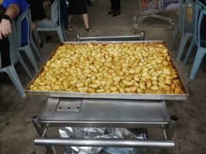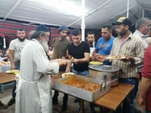 Στο μοναστήρι του Αγίου Γερασίμου του Ιορδανίτη, ο Καθηγούμενος της Μονής Γέροντας Χρυσόστομος δίνει ευλογία φαγητό σε όλο τον κόσμο που βρίσκεται εκεί.